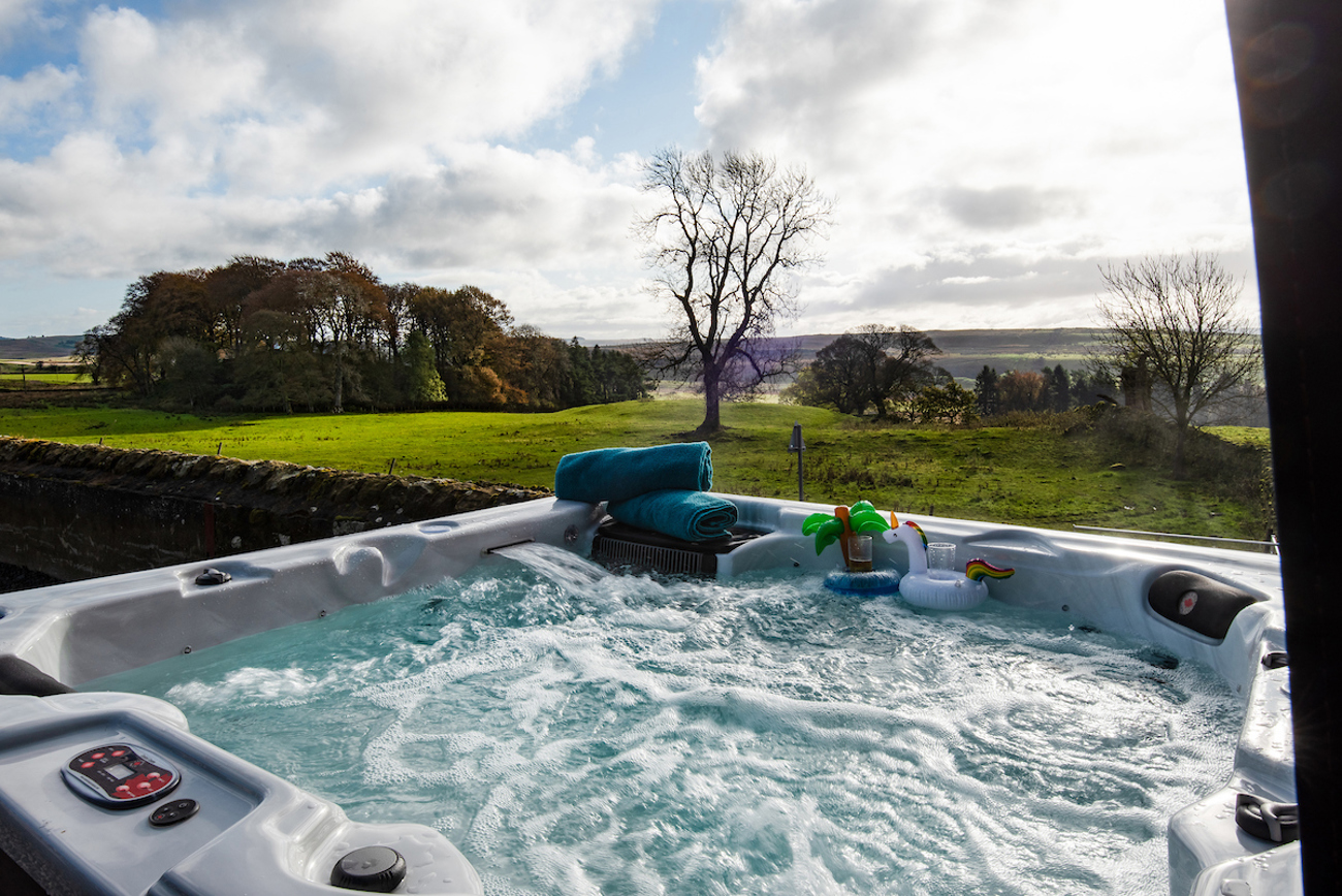 One of the Byer’s highlights is undoubtedly the hot-tub where you warm up and enjoy a glass of wine after a day of walking along Hadrian’s Wall while looking over the Fell.