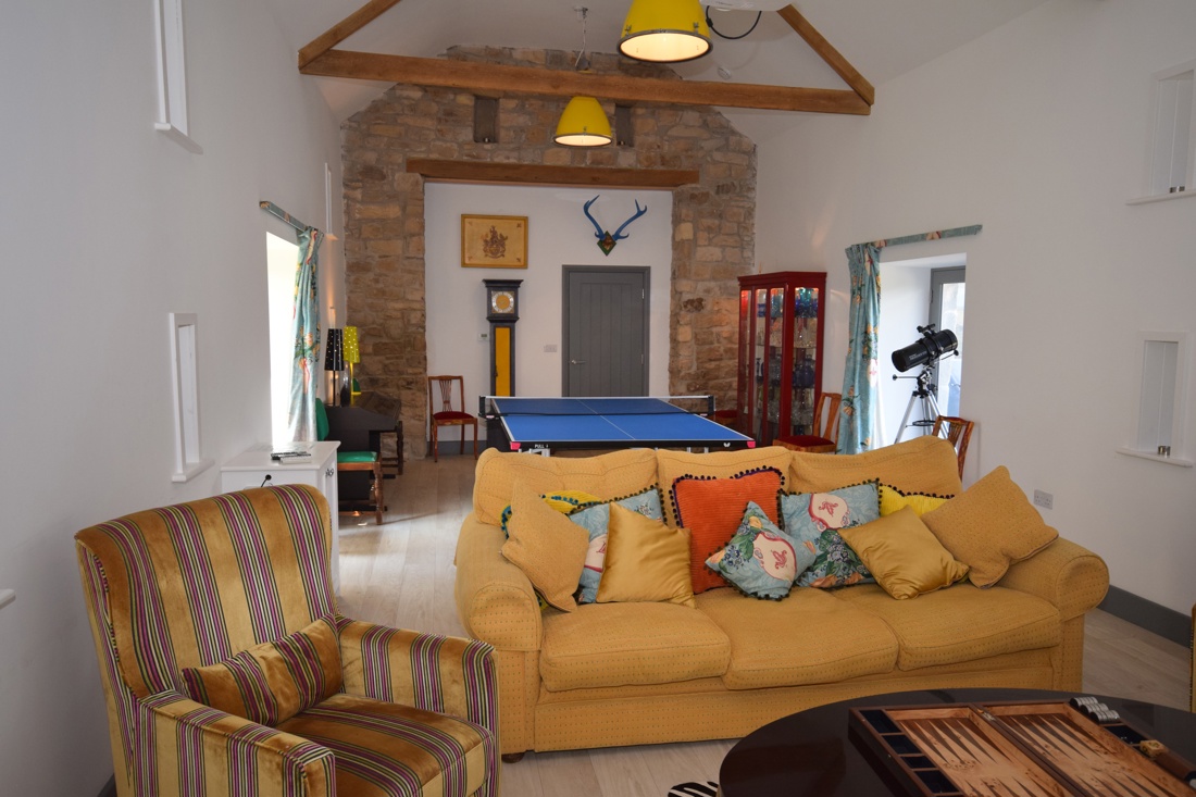 The party barn, which is attached to the Byre, is a haven for kids and adults who haven’t quite grown up yet. It has a projector, sound system, piano and ping pong table. The original arrow slit windows have been fitted with LED coloured lights which can be synced to music in case you want to follow up a day of walking with some dancing!