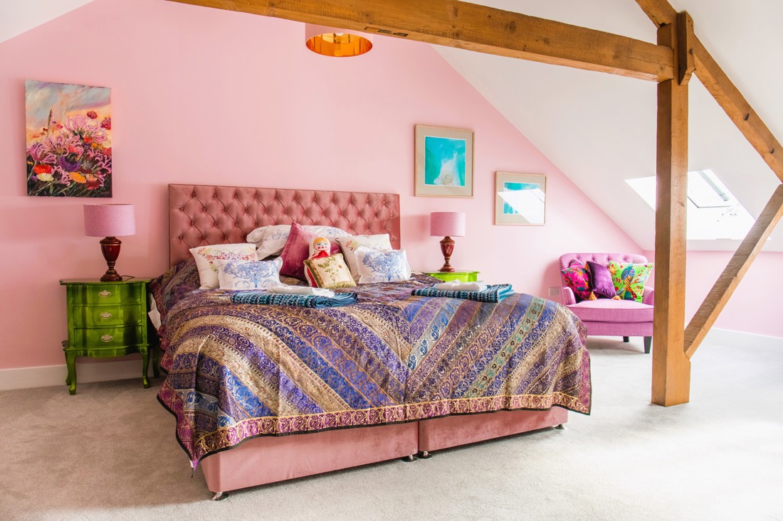 The first floor bedrooms face south and enjoy the morning sun which lights up Sabina's colours, floral prints and bold soft furnishings.
