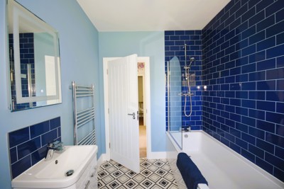These two bedrooms share a family bathroom which has a bath with shower, basin with illuminated mirror, heated towel rail and WC. The bathroom has a view to the West of Hadrian's Wall climbing up to a Roman Fort.